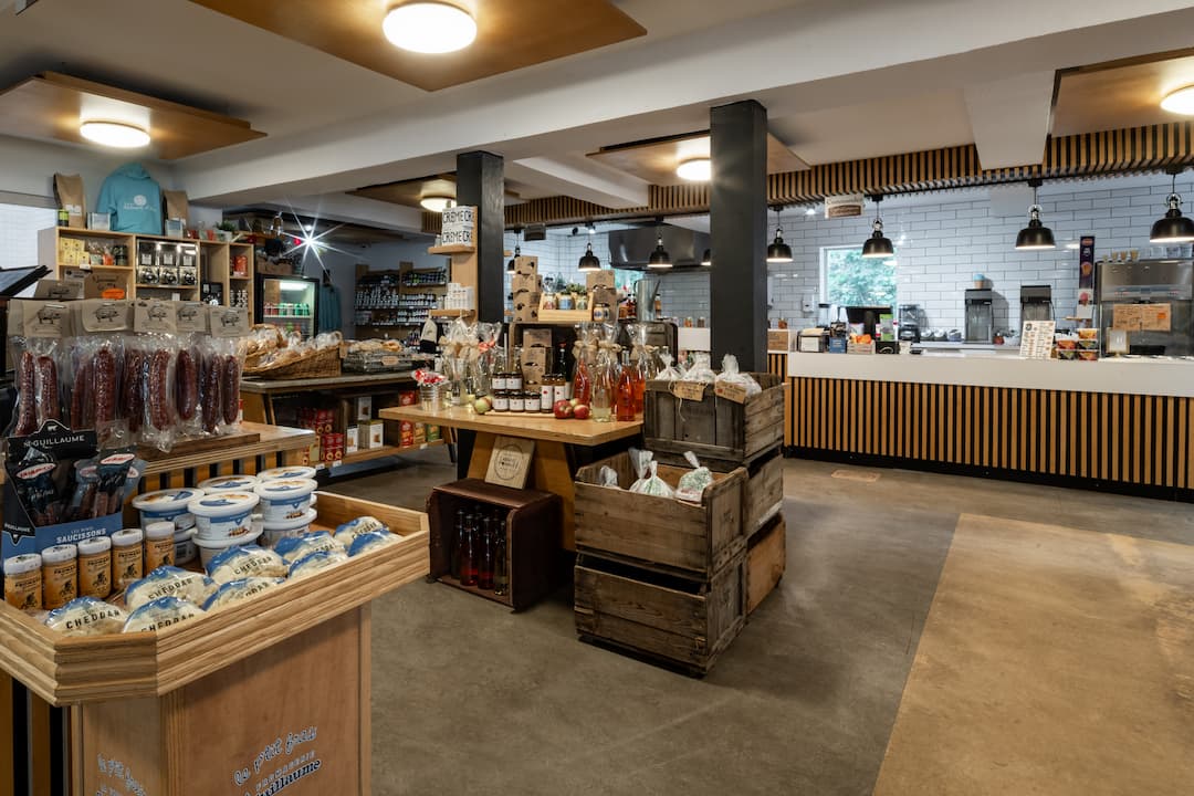 En saison, pour une petite pause, prenez place au coin sandwicherie pour déguster leur fameuse poutine ou un choix de salades maison, sandwichs, ou le fameux sandwich grillé au fromage d’Oka (grilled cheese).
